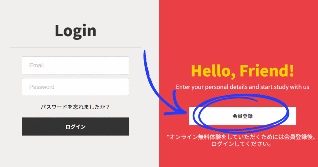 (無料体験したことがあれば会員登録済みの状態です。)