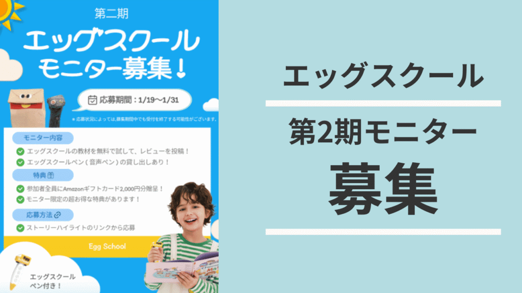 | モニター内容 | ① エッグスクールの教材を2週間無料体験 ② SNSでレビュー投稿 |