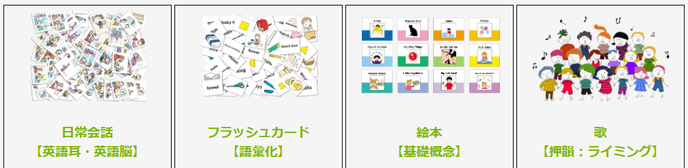 | 教材内容 | 絵本25冊 動画 (1,600分) 玩具 |