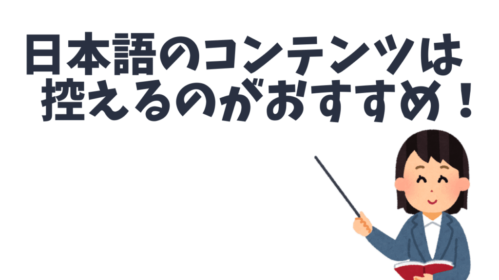 日本語のコンテンツを日常的に見ている場合、子どもは英語より日本語のコンテンツの方が見やすく単純に楽しめます。そのため英語のコンテンツを見ない、もしくは見なくなる可能性があります。