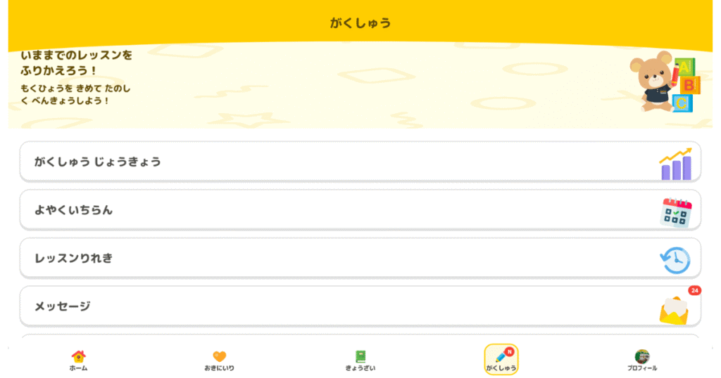 • キャラクター先生など楽しい講師とのレッスンもあり