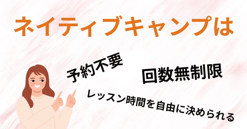 ネイティブキャンプは、予約不要・レッスン回数無制限で受けられるオンライン英会話サービスです。