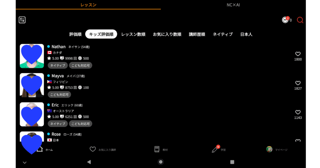 ネイティブキャンプのキッズモードについては、3. キッズモード で詳しく紹介します。