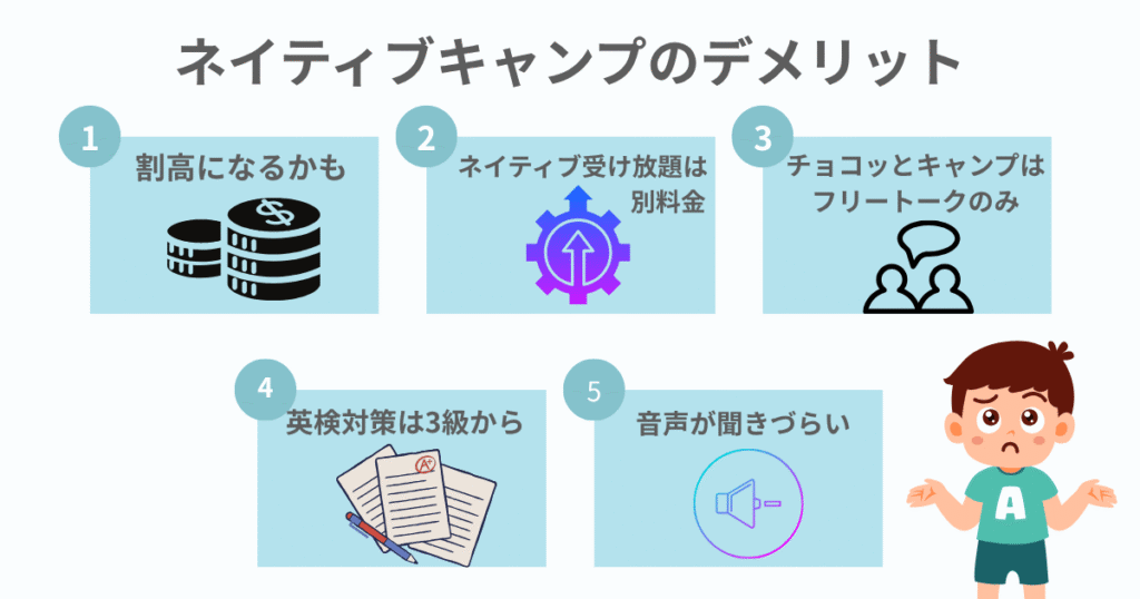 ネイティブキャンプを小学1年生の息子が利用して感じた「デメリット」を5つ紹介します。