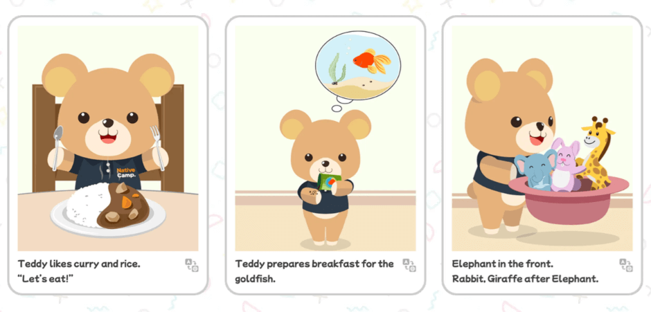 小1の息子はキャラクター先生のレッスンがお気に入り。取り込み中でなかなかレッスンできないクマのTeddy先生のレッスンが取れた時はとてもうれしそうにしていました。