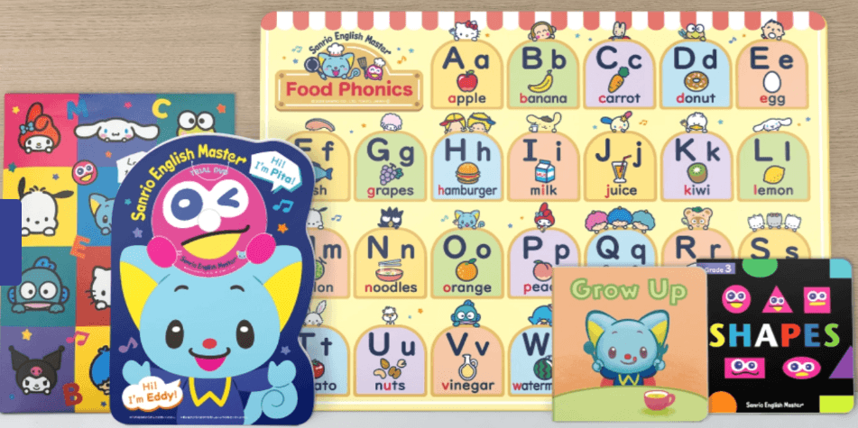 サンリオイングリッシュマスターは、動画・絵本・おもちゃが連動した、幼児向けの英語教材です。