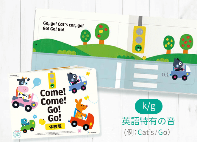 英語を効果的にインプットできるよう工夫されており、乳幼児期のどの年齢からでも始めやすく、教材のボリュームもたっぷり。長くしっかり使えるのが特長です。